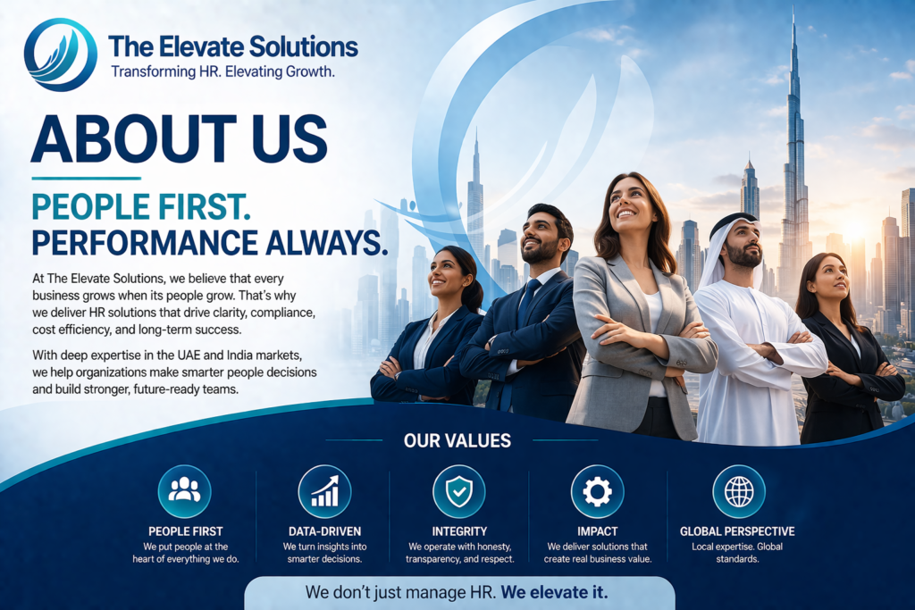 The Elevate Solutions is a UAE-based HR consulting and outsourcing firm with operational support in India and the United Arab Emirates, helping organisations streamline their human resource functions, ensure compliance, and optimise workforce costs.